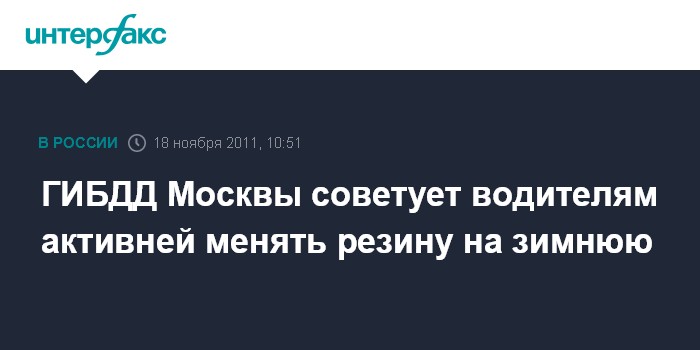 Москва. 18 ноября. INTERFAX.RU - В московской Госавтоинспекции предупреждают о том, что ездить на машинах с летней резиной опасно.