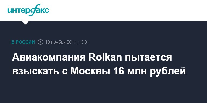 Авиакомпания Rolkan пытается взыскать с Москвы 16 млн рублей