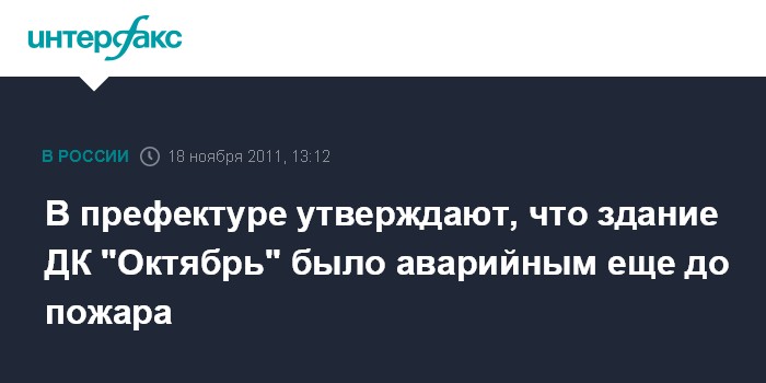 Он заявил, что здание ДК "Октябрь" было аварийным еще до пожара. "Было заключение МЧС о недопустимости эксплуатации здания, поскольку в нем не соблюдались элементарные правила пожарной безопасности, - уточнил первый зампрефекта. - Состояние перекрытий и конструкций здания было неудовлетворительным, а пожар только усугубил ситуацию".