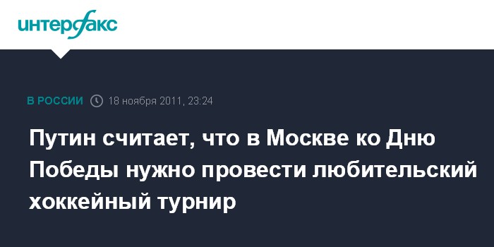 Путин считает, что в Москве ко Дню Победы нужно провести любительский хоккейный турнир