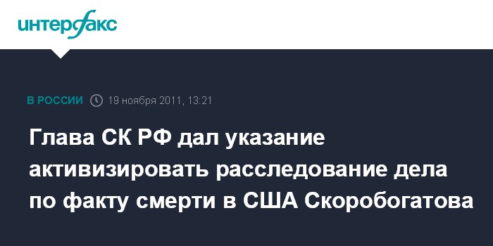 Москва. 19 ноября. INTERFAX.RU - Глава СК РФ Александр Бастрыкин дал указание активизировать расследование уголовного дела по факту смерти в США Вани Скоробогатова, сообщили в Следственном комитете РФ.