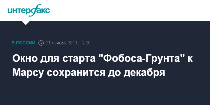 Москва. 21 ноября. INTERFAX.RU - У Роскосмоса теоретически остается две-три недели на то, чтобы установить связь с межпланетной станцией "Фобос-Грунт" и отправить ее к Марсу, сообщил "Интерфаксу-АВН" источник, знакомый с ситуацией.