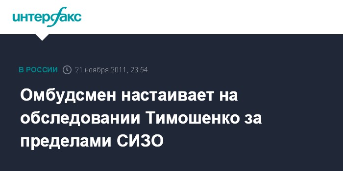Киев. 21 ноября. INTERFAX.RU - Уполномоченный Верховной Рады по правам человека Нина Карпачева надеется, что в ближайшие дни экс-премьера Украины Юлию Тимошенко обследуют в медицинском учреждении за пределами СИЗО.