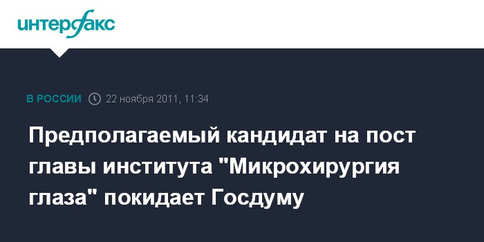 Предполагаемый кандидат на пост главы института "Микрохирургия глаза" покидает Госдуму