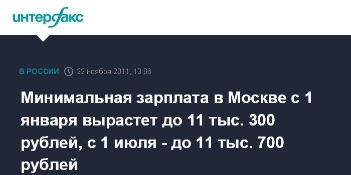 Минимальная зарплата в Москве с 1 января вырастет до 11 тыс. 300 рублей, с 1 июля - до 11 тыс. 700 рублей