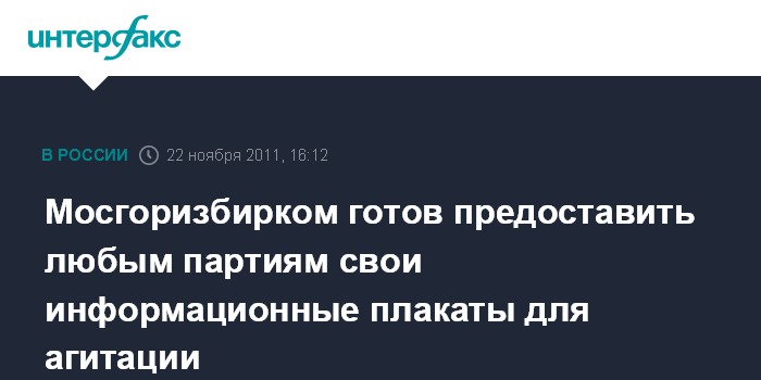 Москва. 22 ноября. ИНТЕРINTERFAX.RU - Московская городская избирательная комиссия готова предоставить политическим партиям информационные плакаты, использованные комиссией в качестве наглядной агитации к предстоящим 4 декабря выборам в Госдуму РФ.