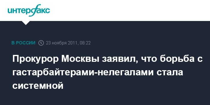 Москва. 23 ноября. INTERFAX.RU - Чтобы переломить ситуацию с незарегистрированными гастарбайтерами, работа по выявлению нелегальных мигрантов ведется теперь ежедневно, а штрафы для юрлиц, привлекающих таких работников, значительно выросли, сообщил прокурор Москвы Сергей Куденеев в интервью "Российской газете", опубликованном в среду.