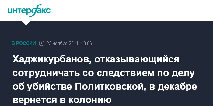 Хаджикурбанов, отказывающийся сотрудничать со следствием по делу об убийстве Политковской, в декабре вернется в колонию