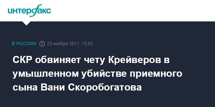 СКР обвиняет чету Крейверов в умышленном убийстве приемного сына Вани Скоробогатова