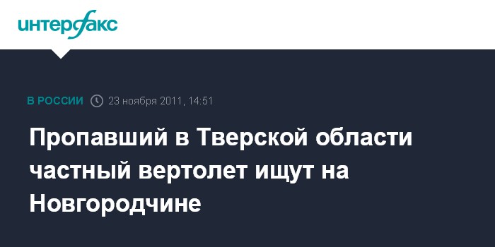 Великий Новгород. 23 ноября. INTERFAX.RU - К поискам пропавшего в Тверской области частного вертолета вслед за Ярославской областью подключилась Новгородчина, сообщили "Интерфаксу" в региональном МЧС.