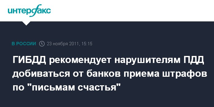 ГИБДД рекомендует нарушителям ПДД добиваться от банков приема штрафов по "письмам счастья"