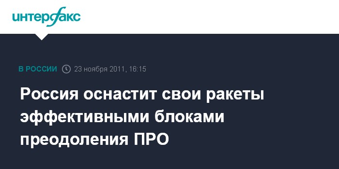 "Стратегические баллистические ракеты, которые поступают на вооружение ракетных войск стратегического назначения и нашего Военно-морского флота, будут оснащаться перспективными комплексами преодоления ПРО и новыми высокоэффективными боевыми блоками", - заявил Медведев в связи с ситуацией, сложившейся вокруг системы ПРО страны НАТО в Европе.