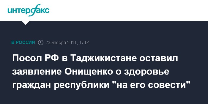 Посол РФ в Таджикистане оставил заявление Онищенко о здоровье граждан республики "на его совести"