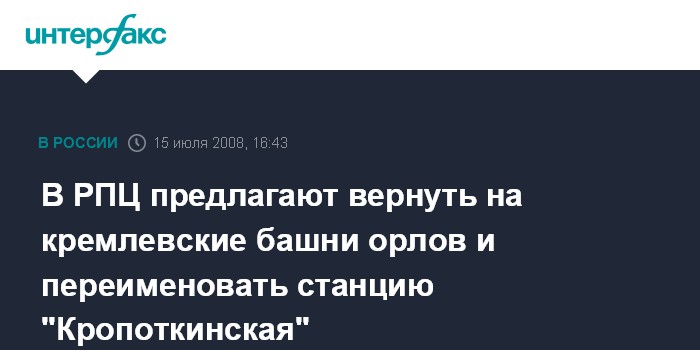 В РПЦ предлагают вернуть на кремлевские башни орлов и переименовать станцию "Кропоткинская"