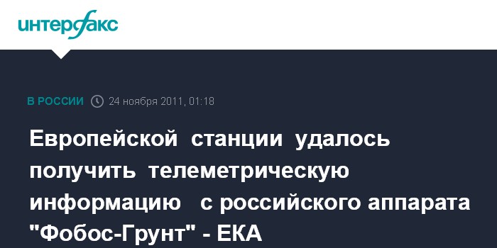 Европейской станции удалось получить телеметрическую информацию с российского аппарата "Фобос-Грунт" - ЕКА