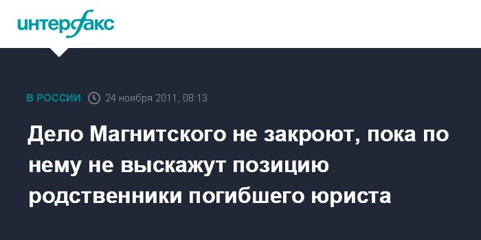 Дело Магнитского не закроют, пока по нему не выскажут позицию родственники погибшего юриста