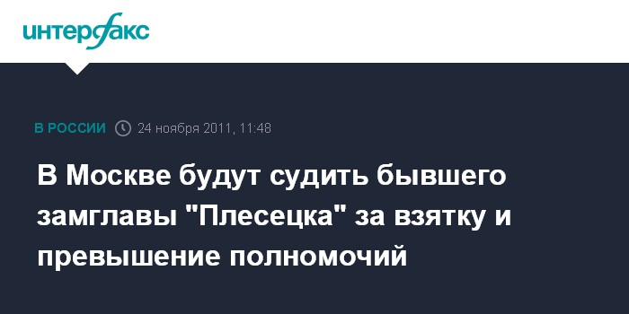 В Москве будут судить бывшего замглавы "Плесецка" за взятку и превышение полномочий