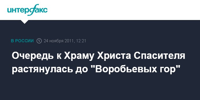 Москва. 24 ноября. INTERFAX.RU – На Сокольнический ветке московского метрополитена пытаются регулировать потоки паломников, следующих к Храму Христа Спасителя, и объявляют, что начало очереди к Храму в настоящий момент у станции метро "Воробьевы горы".