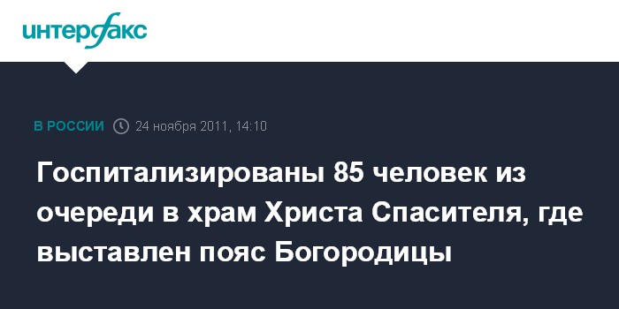 Москва. 24 ноября. INTERFAX.RU - За последние пять суток за помощью к московским медикам из очереди желающих приложиться к поясу Богородицы в храме Христа Спасителя обратились 788 человек, сообщил "Интерфаксу" источник в медицинских кругах столицы в четверг.