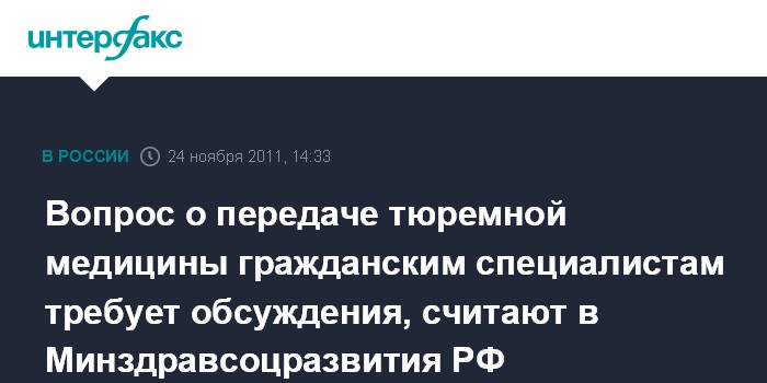 Вопрос о передаче тюремной медицины гражданским специалистам требует обсуждения, считают в Минздравсоцразвития РФ
