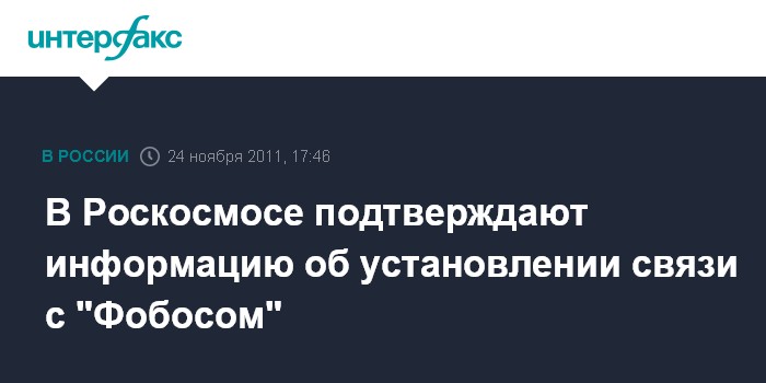 Москва. 24 ноября. INTERFAX.RU - Наземная станция, расположенная на Байконуре (Казахстан), приняла в четверг сигнал с аппарата "Фобос-Грунт", сообщил "Интерфаксу-АВН" руководитель пресс-службы Роскосмоса Алексей Кузнецов.