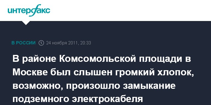 Москва. 24 ноября. INTERFAX.RU - Громкий хлопок произошел в районе Комсомольской площади вечером в четверг в Москве, сообщил "Интерфаксу" источник в правоохранительных органах.