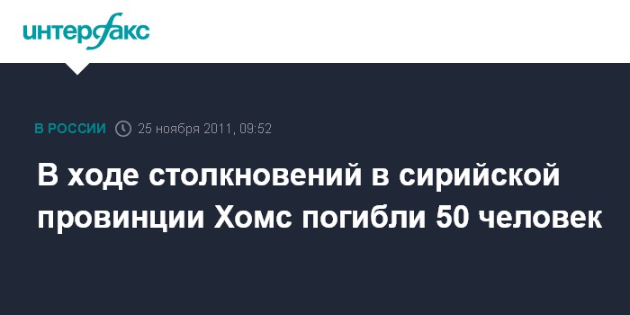 Дубай. 25 ноября. INTERFAX.RU - Жертвами столкновений между военными и антиправительственными демонстрантами в сирийской провинции Хомс (Сирия) в четверг стали 50 человек, сообщает в пятницу межарабский телеканал Al Arabiya.