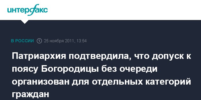 Патриархия подтвердила, что допуск к поясу Богородицы без очереди организован для отдельных категорий граждан