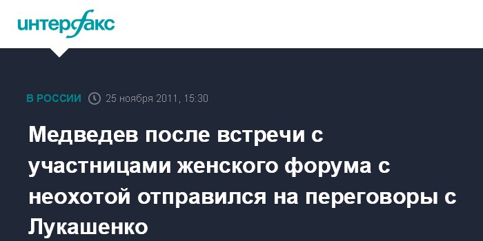 Медведев после встречи с участницами женского форума с неохотой отправился на переговоры с Лукашенко