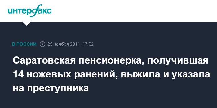 Саратовская пенсионерка, получившая 14 ножевых ранений, выжила и указала на преступника