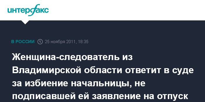 Женщина-следователь из Владимирской области ответит в суде за избиение начальницы, не подписавшей ей заявление на отпуск