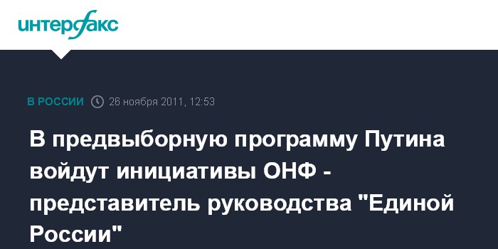 В предвыборную программу Путина войдут инициативы ОНФ - представитель руководства "Единой России"