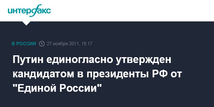 Путин единогласно утвержден кандидатом в президенты РФ от "Единой России"