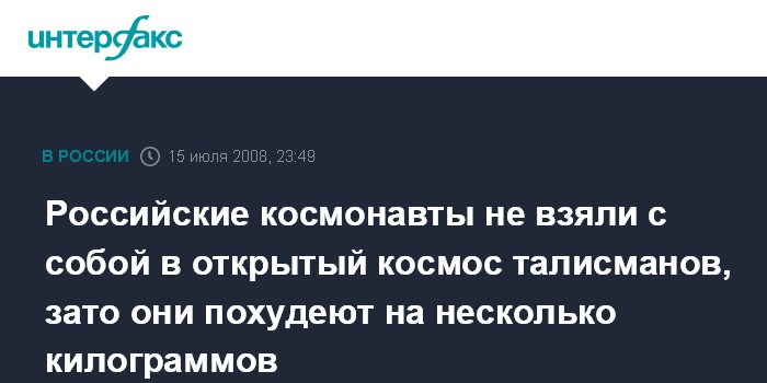 Российские космонавты не взяли с собой в открытый космос талисманов, зато они похудеют на несколько килограммов