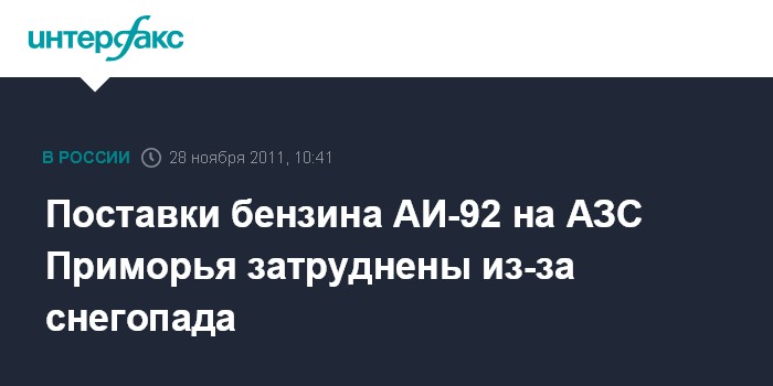 Владивосток. 28 ноября. INTERFAX.RU - На ряде АЗС Приморья наблюдаются перебои с поставками бензина АИ-92, сообщил в понедельник агентству "Интерфакс-Дальний Восток" представитель УФАС Приморья Кристина Мирзоева.