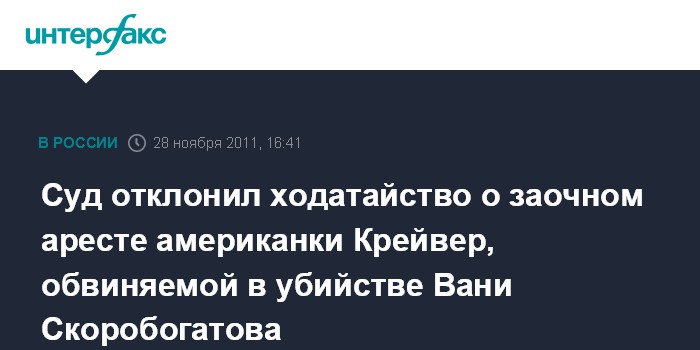 Суд отклонил ходатайство о заочном аресте американки Крейвер, обвиняемой в убийстве Вани Скоробогатова