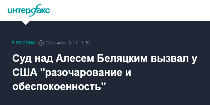 Суд над А.Беляцким вызвал "разочарование и обеспокоенность", заявил Келли Литовскому радио. "Беляцкий - уважаемый в Белоруссии правозащитник, суд над ним мы расцениваем как политически мотивированный, а приговор - как попытку заставить замолчать уважаемого защитника прав человека и основных свобод", - сказал представитель США.