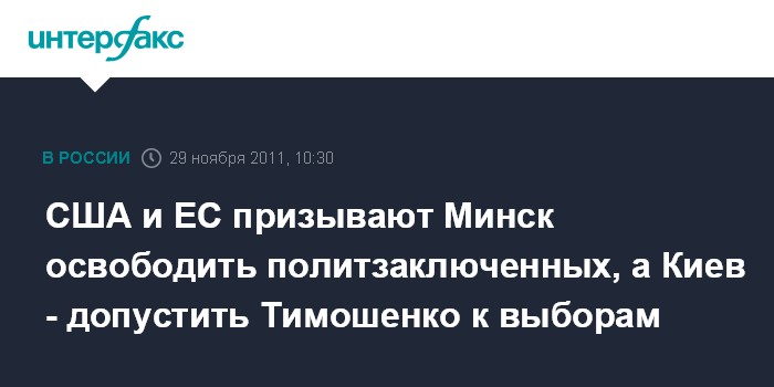 США и ЕС призывают Минск освободить политзаключенных, а Киев - допустить Тимошенко к выборам