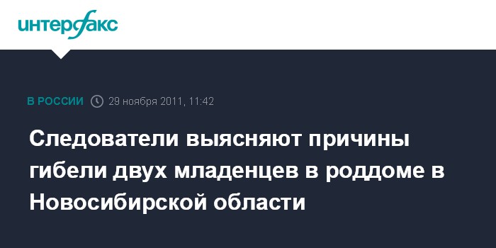Новосибирск. 29 ноября. INTERFAX.RU - Следственные органы Новосибирской области проводят доследственную проверку по фактам гибели двух младенцев в Центральной районной больнице Красноозерска.