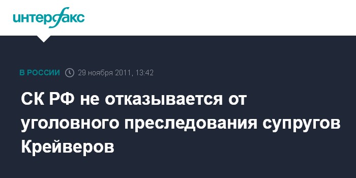 СК РФ не отказывается от уголовного преследования супругов Крейверов