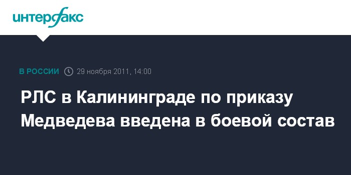 Калининград. 29 ноября. INTERFAX.RU - В Калининградской области введена в боевой состав системы предупреждения о ракетном нападении новая РЛС класса "Воронеж-ДМ". Приказ о вводе станции отдал президент России Дмитрий Медведев.
