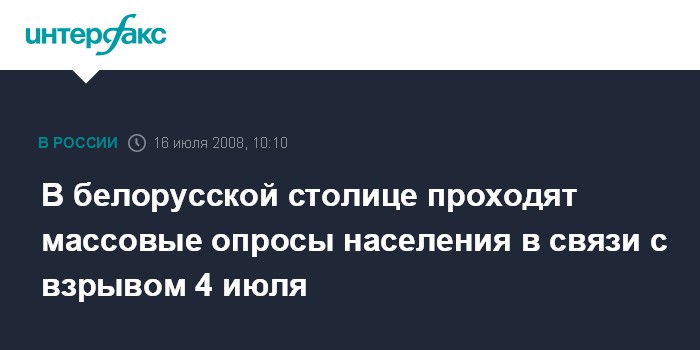 Москва. 16 июля. INTERFAX.RU - В связи с взрывом, произошедшим во время концерта, в рамках празднования Дня независимости, в Минске начались опросы населения, которые, по словам работников милиции, должны охватить 100% жителей белорусской столицы, передает корреспондент "Интерфакса".