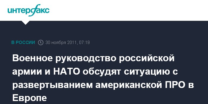 Военное руководство российской армии и НАТО обсудят ситуацию с развертыванием американской ПРО в Европе