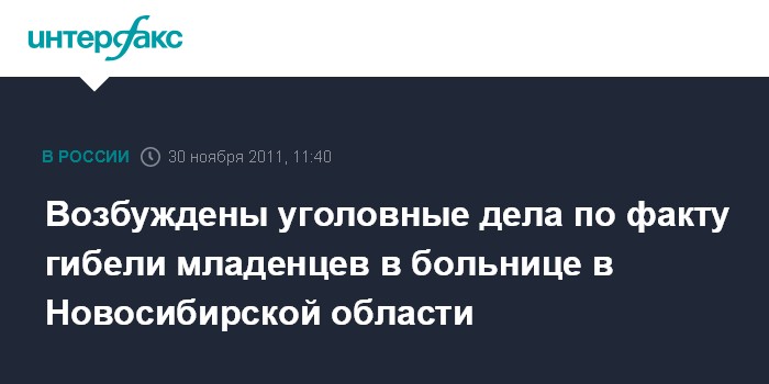 Новосибирск. 30 ноября. INTERFAX.RU - Следственные органы Новосибирской области возбудили два уголовных дела по факту смерти младенцев в больнице Красноозерска Новосибирской области.