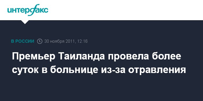 Бангкок. 30 ноября. INTERFAX.RU - Премьер-министр Таиланда Йинглак Чинават покинула в среду больницу в Бангкоке, где прошла курс лечения после сильного пищевого отравления, передает местное телевидение.