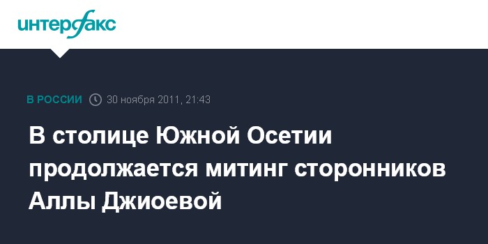 Цхинвали. 30 ноября. INTERFAX.RU - Около трех тысяч сторонников кандидата в президенты Южной Осетии от оппозиции Аллы Джиоевой митингуют на площади напротив Дома правительства в центре Цхинвали, передает корреспондент "Интерфакса" с места событий.