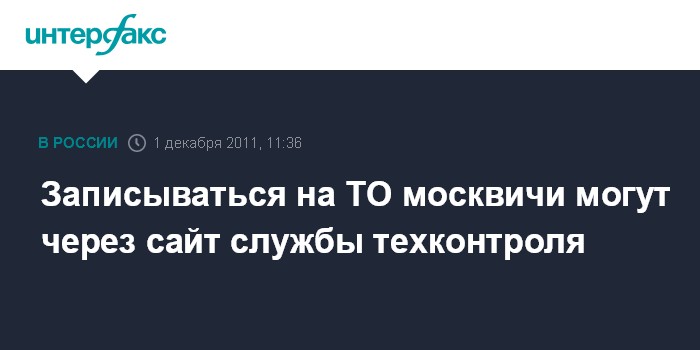 Москва. 1 декабря. INTERFAX.RU - Москвичи смогут записаться на техосмотр через Интернет, сообщила представитель пресс-службы департамента транспорта и развития дорожно-транспортной инфраструктуры Москвы Жанна Терехова.