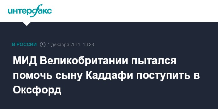 Лондон. 1 декабря. INTERFAX.RU - Специальное расследование позволило выяснить, что министерство иностранных дел Великобритании весной 2002 года пыталось убедить Оксфордский университет принять на обучение сына Муамара Каддафи Сейфа аль-Ислама, надеясь таким образом наладить дружественные отношения с Ливией, сообщает в четверг британская газета The Guardian.