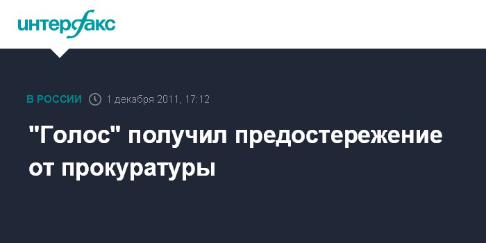 Москва. 1 декабря. INTERFAX.RU - Прокуратура Москвы объявила по результатам проверки предостережение руководству ассоциации некоммерческих организаций "В защиту прав избирателей "Голос" о недопустимости нарушений закона.
