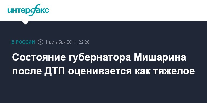 Состояние губернатора Мишарина после ДТП оценивается как тяжелое